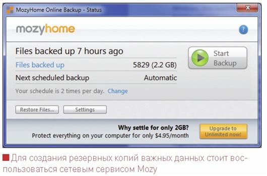 Во-вторых, подберите сетевой сервис резервного копирования, например Carbonite (www.carbonite.com) или Mozy (www.mozy.com), для того чтобы сохранять наиболее важные данные в облаке.