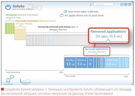Утилита Soluto работает лучше, чем все остальные диспетчеры загрузки, с которыми мне довелось познакомиться. (Она удалила даже пару странных всплывающих окон, которые вдруг начали появляться на моем экране в процессе загрузки Windows.) Если быстрота загрузки компьютера вам небезразлична, Soluto, безусловно, станет достойным решением.