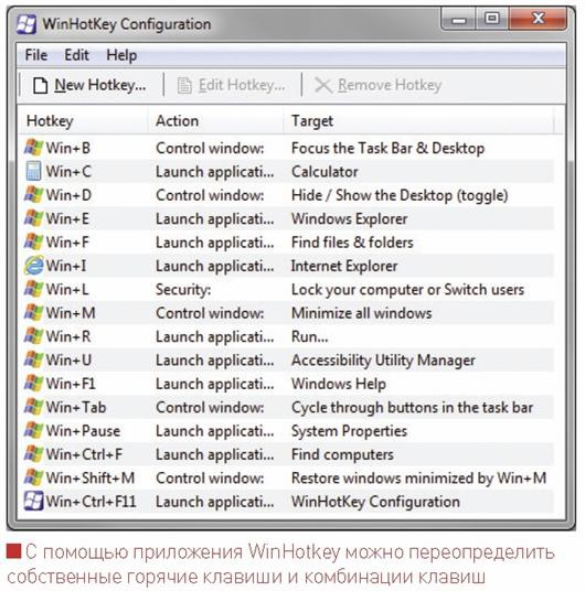 Начнем с горячих клавиш. Отличным инструментом для их создания является бесплатная утилита WinHotKey (find.pcworld.com/71651). Она обладает богатым набором функциональных возможностей и отличается удивительной простотой использования -- по крайней мере, по сравнению с теми перегруженными тяжеловесными сценариями приложениями, которые мы будем обсуждать дальше.
