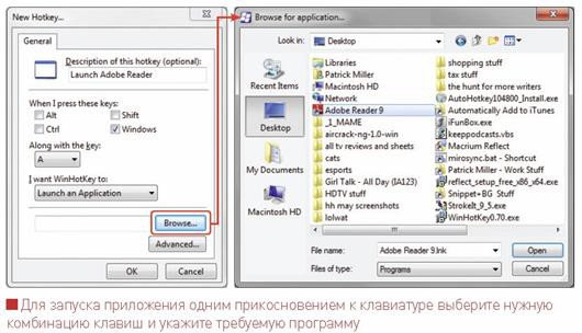 С помощью горячих клавиш и макросов любую операцию можно выполнить одним прикосновением к клавиатуре. Каждая горячая клавиша закрепляется за каким-то конкретным действием. Таким образом можно, например, открыть файл, запустить программу на выполнение или остановить музыкальный проигрыватель. Макросы (которые широко применяются, в частности, в Microsoft Excel) представляют собой цепочку запрограммированных действий, происходящих всякий раз при нажатии определенной комбинации клавиш (или при запуске соответствующей программы).