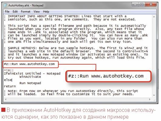 Теперь, когда с горячими клавишами покончено, настало время перейти к их более мощным родственникам -- макросам. Для выполнения соответствующих операций нам приглянулся бесплатный инструмент AutoHotkey (find.pcworld.com/71652), но его использование уже не покажется легкой прогулкой.