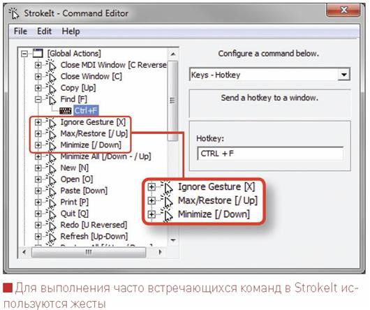 Если вы нарисуете мышью символ «C» поверх любого окна, оно закроется. Выделите текст и проведите линию снизу вверх -- текст будет скопирован в буфер обмена. Нарисуйте символ «E» (или хотя бы что-то, приблизительно на него похожее) -- на экране появится окно Проводника Windows и т.д. Приложение StrokeIt позволяет привязывать различные жесты к разным программам (программа поставляется с набором предопределенных жестов, уже активизированных для целого ряда приложений).