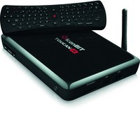 Клавиатура заслуживает отдельного упоминания. Она небольшая и по форме действительно напоминает пульт дистанционного управления, однако снабжена классической QWERTY-раскладкой и кольцом управления, имитирующим джойстик. Интересно и то, что здесь имеется не стандартный ИК-передатчик, а радиодиапазон, в отличие от устройств управления других изготовителей. Дело в том, что клавиатура оснащена гироскопическим датчиком, применять который лишь в зоне прямой видимости было бы недостаточно функционально.