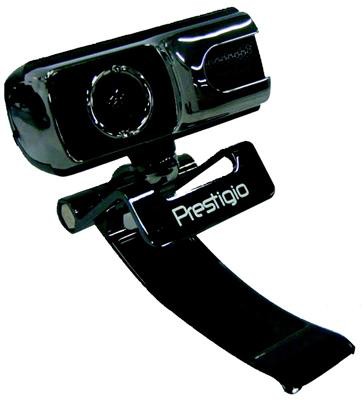 Компания Prestigio каких только устройств не выпускает, в том числе и веб-камеры. Благодаря использованию металлических элементов в конструкции эта модель производит впечатление дорогой и привлекательной. На лицевой панели имеется сетчатая вставка, за которой скрываются микрофон и довольно яркий светодиод, загорающийся при записи видеопотока. Немного удивило отсутствие на подставке резиновых вставок, имеются лишь не слишком удобные пластиковые элементы. Посредством широкой клипсы устройство монтируется на верхнюю часть ЖК-монитора или экрана ноутбука. Модуль камеры можно наклонять относительно подставки в весьма широких пределах, а также поворачивать на 360о.