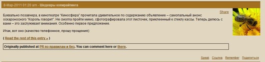 Так может выглядеть кросспост в ЖЖ