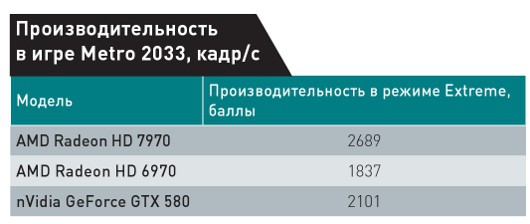 Прирост производительности в играх по сравнению с 6970 составляет не меньше 25%, а в большинстве тестов он еще выше. GeForce GTX 580 также остался за бортом. Правда, стоит учесть, что цена новинки довольно велика -- 550 долл. Она чуть выше реальных цен на начало января этого года на GeForce GTX 580 с 1,5 Гбайт памяти, но меньше, чем стоит 3-Гбайт версия. Цены на Radeon HD 6970 еще ниже: они начинаются всего с 11 тыс. руб. Так что, если 7970 действительно появится в российской рознице по цене около 17 тыс. руб., то по соотношению цена/качество она будет заметно проигрывать своей предшественнице.