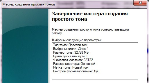• Найдите диск, который нужно отформатировать. В моем случае это будет Диск 5. Щелкните на нем мышью и укажите «Преобразовать в MBR-диск». В следующем поле щелкните правой кнопкой мыши на нераспределенном сегменте, выберите «Новый простой том» и после запуска Мастера нажмите кнопку «Далее». В поле «Размер простого тома» введите 32,768 Mбайт (это максимальный размер, поддерживаемый файловой системой) или какое-нибудь число поменьше. Присвойте накопителю букву и нажмите «Далее».