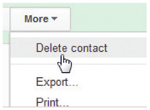 | Чтобы удалить устаревший адрес, откройте в Gmail раздел «Контакты» и выберите пункт «Удалить контакт» |