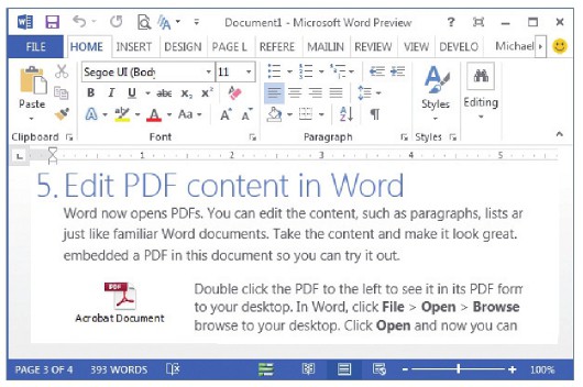| Word 2013 позволяет просматривать и редактировать содержимое pdf-файлов, не покидая текстового процессора |