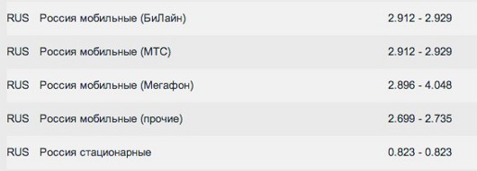 SIPNET (www.sipnet.ru) -- известный российский провайдер SIP-телефонии. Именно с него начался мой первый опыт дешевых звонков по России. Откроем раздел с тарифами (http://go.osp.ru/35728) и посмотрим цены на звонки в Россию: