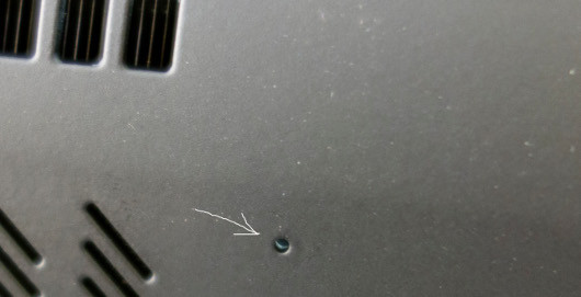 | Мы изначально предположили, что за этой маленькой дырочкой на тыльной части скрывается старый добрый Reset. Но нет -- это экстренное отключение питания |
