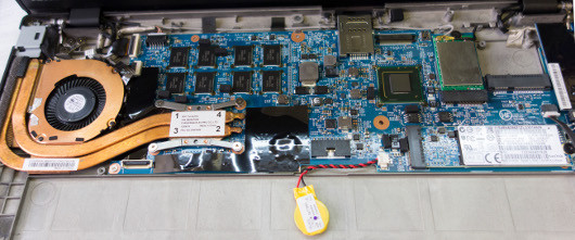 Вскрытие ультрабука объяснило причины столь бесшумной работы: система охлаждения разработана японской многопрофильной компанией Furukawa Electric, основанной еще в 1884 г. А сам пропеллер несет на себе лейбл Panasonic, что также очень к себе располагает. Прямо как в классическом анекдоте про секрет вкусного чая: «Евреи, не жалейте заварки!».
