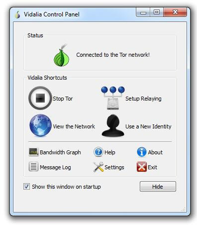 | Панель управления Vidalia для Tor автоматически обрабатывает все соединения, запуская Firefox всякий раз, как только вам потребуется выйти в Интернет |
