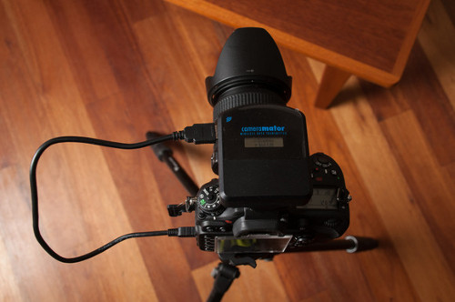 Устройство CameraMator, продаваемое компанией Wooblue за 299 долл. (в Москве оно стоит около 12 тыс. руб.), присоединяется к горячему башмаку и подключается к планшету через порт USB. Кроме того, у CameraMator имеется ремешок, помогающий закреплять приспособление на штативе. Как и два других устройства, которые уже обсуждались, CameraMator работает от аккумулятора.