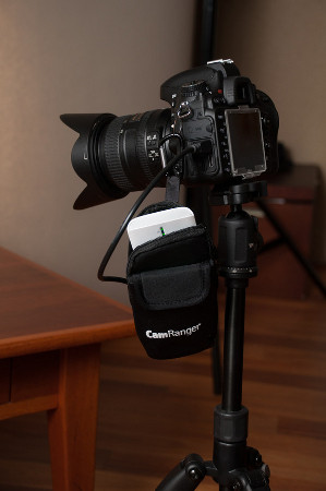 Дизайн CamRanger проектировался не как для аксессуара к камере (на самом деле внутри корпуса размещался беспроводной маршрутизатор TP-Link). В отличие от двух других приспособлений, которые крепятся на горячий башмак фотоаппарата, CamRanger представляет собой автономное устройство, которые соединяется с камерой через порт USB. Однако пристроить рядом с фотоаппаратом предмет такой странной формы бывает непросто. Входящий в комплект поставки неопреновый чехол можно подвесить к ремешку фотоаппарата или к штативу. Это не слишком элегантно, но вполне приемлемо. (Естественно, если вы хотите задействовать горячий башмак для подключения вспышки или фототриггера, для CameraMator и iUSBportCamera вам придется подыскать новое место.)