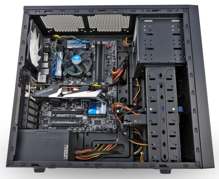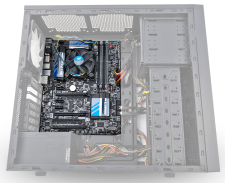 И наконец, последним штрихом к общей картине стал блок питания, от которого требовались высокая эффективность и поддержка Haswell. Модель FSP Group Raider была выбрана по трем причинам: вполне достаточный запас мощности в 450 Вт, поддержка Haswell и наличие сертификата 80-Plus Bronze, а также отличная репутация производителя.
