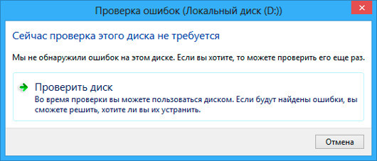 В среде Windows 8 запуск Check Disk свидетельствует о наличии каких-то проблем. Если утилита обнаруживает ошибки, рекомендуется выполнить полное сканирование и восстановление. Если ошибок не выявлено, достаточно провести быструю проверку. После этого программа позволяет выполнить полное сканирование независимо от полученных результатов.