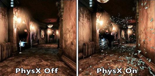 Технология физической имитации NVIDIA PhysX заставляет объекты в игре вести себя точно так же, как и в реальном мире (ткани с треском рвутся под действием внешних сил и колышутся на ветру, волны переливаются на солнце и с брызгами разбиваются о камни, здания при взрыве разлетаются на мелкие осколки и т.д.). Не все игры поддерживают PhysX, но там, где такое происходит, визуальное восприятие становится совсем иным.