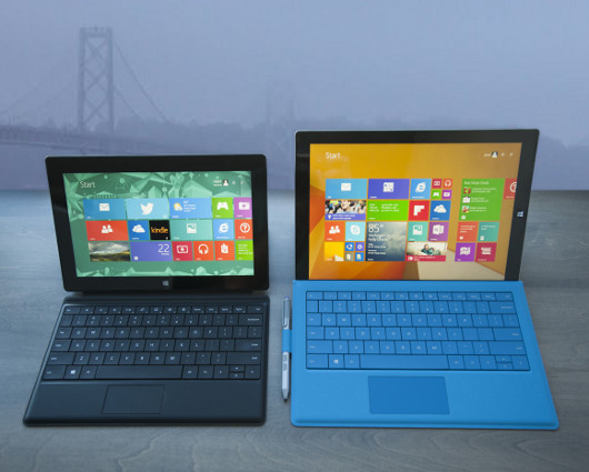| По сравнению с Surface Pro 2, имеющим дисплей с диагональю 10,6 дюйма (слева), 12-дюймовый экран SurfacePro 3 предлагает пользователю гораздо больше полезного пространства |