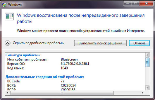 Получить информацию BSoD можно и после перезагрузки. Если вы видите сообщение Windows has recovered from an unexpected shutdown (Windows восстановлена после непредвиденного завершения работы), считайте, что вам повезло. Можно нажать кнопку Check for solution, но вряд ли это вам сильно поможет.