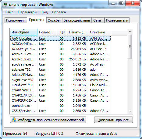 Если же проделанные операции не помогают, щелкните мышью на заголовке колонки «Память» и посмотрите, не здесь ли скрывается виновник.