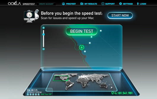 Однако разница между реальной и рекламируемой скоростью должна быть не так уж велика. И если вы регулярно получаете не более 70% от обещанного, а счета, выставляемые провайдером, удивительно низкими не назовешь, значит, где-то есть узкое место. (Если вы не знаете, как протестировать соединение с Интернетом, зайдите на сайт speedtest.net и нажмите кнопку Begin Test.)