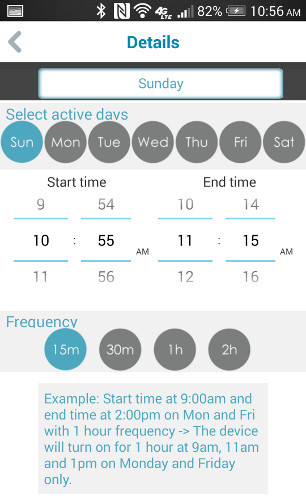 Можно составить расписание, в соответствии с которым Smart Plug будет включаться и выключаться. Для большинства пользователей достаточно будет задать часы, когда они находятся дома или за его пределами, но D-Link предлагает определить еще и три специальных расписания. Укажите, какое из них должно быть активно. Приложение поддерживает часовые пояса, но не позволяет включать Smart Plug, когда начинает темнеть, и выключать, когда становится светло. Нельзя также определить правило, в соответствии с которым время включения и выключения Smart Plug слегка сдвигалось бы таким образом, чтобы со стороны казалось, что кто-то есть дома.