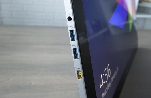 У Horizon 2s имеется всего несколько портов, но выбор их вполне разумен. В нижней части находится разъем для подключения док-станции; справа — устройство для чтения карт памяти, рычаг регулятора громкости и кнопка включения питания; а слева — разъем для подключения наушников, два порта USB 3.0 и разъем питания. С беспроводной связью все в порядке — здесь имеются 802.11ac, Bluetooth 4.0 и NFC. Клавиатура и мышь также имеют беспроводные интерфейсы. Набирать текст на клавиатуре довольно приятно, а мышь хорошо реагирует на прикосновения, но выпуклость на ее корпусе, хотя и выглядит привлекательно, создает определенные неудобства.