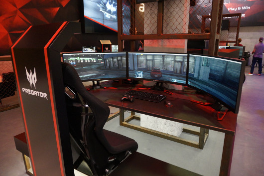 Чуть позже со своими новинками вышли и представители компании Acer. Удивительно, но здесь на игровой составляющей был сделан еще более серьезный акцент — специализированная линейка Predator включает смартфоны, планшеты, десктопы, ноутбуки, мониторы и даже проектор. Были на стенде показаны и многомониторные конфигурации, идеально подходящие для погружения в игровой процесс профессиональными игроками.