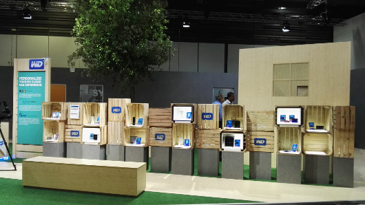 Было очень любопытно увидеть на стенде, изящно оформленном в виде деревянных ящиков, и портативный накопитель My Passport Pro, предназначенный для пользователей Mac. Особенность этого устройства, изготовленного в алюминиевом корпусе, состоит в том, что он также поддерживает работу в режиме RAID 1. Это обеспечивает дополнительную защиту контента. RAID-устройство в кармане — действительно очень здорово.