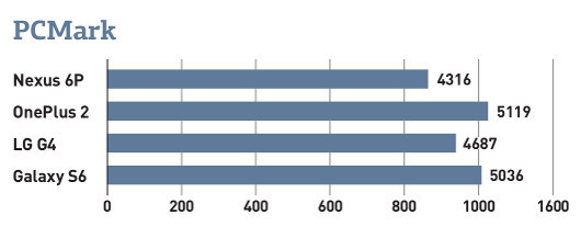 | Тесты PCMark, моделирующие повседневное использование смартфона: просмотр веб-страниц, редактирование документов и пр. По совершенно загадочным причинам точно такой же процессор Snapdragon 810 в устройстве OnePlus 2 оказался значительно быстрее |