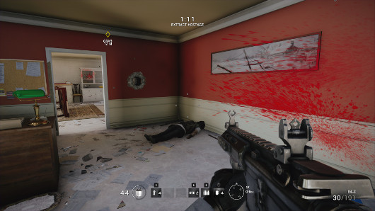 Спецназ выносит двери, разбивает окна, закидывает комнаты светошумовыми гранатами, палит по каждой шелохнувшейся тени. Хлипкие стены быстро становятся дырявыми, в воздухе витает пыль от побелки — с момента начала штурма прошло не более пяти секунд. Игра легко «дает Голливуд»: перестрелки великолепны, оружие здорово ощущается и звучит, как подобает, все происходит настолько быстро, что действуешь на уровне рефлексов. Подсознательно учишься правильно выглядывать из-за угла, все время стараешься занять безопасную позицию и сильно не шуметь — враги могут быть где угодно, они только и ждут, чтобы засечь вас.