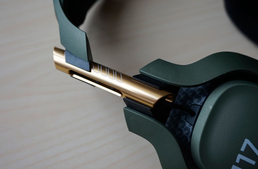Astro Gaming A50 Wireless выглядят действительно по-геймерски массивными. Версия Halo-edition выполнена в цвете «хаки», так что дизайн девайса получился немного военным. Оголовье и сами наушники соединяются металлическими трубками. Неплохой дизайнерский ход, благодаря которому аксессуар не останется незамеченным ни на прилавке магазина, ни на голове у геймера. Металлические трубки выполняют и еще одну функцию — защищают кабель от перегибания при регулировке высоты.