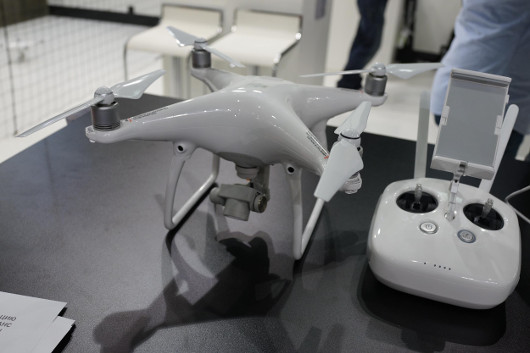 В последнее время модной стала тема дронов. На стенде DJI можно было полюбоваться на новинку — квадрокоптер Phantom 4, отличительными особенностями которого является наличие датчиков позволяющих избегать столкновения с встречными препятствиями. Кстати, еще один такой же летал неподалеку |