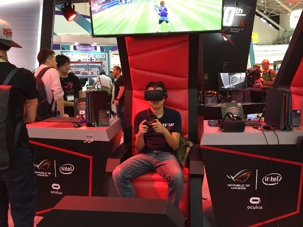 Вообще же, если говорить о главном тренде нынешнего Computex, то это, безусловно, гейминг, киберспорт и VR-ready-решения. Практически на каждом стенде производителей ПК и ноутбуков был раздел, посвященный играм. И в каждом таком разделе имелась миниатюрная зона для любителей VR.