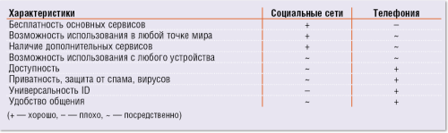 | Таблица 1. Web 2.0 и телефония: возможности и недостатки. |
