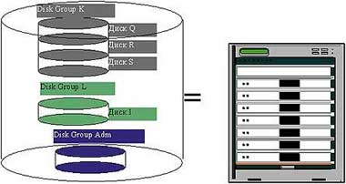 На Рисунке 2 схематично представлено разбиение дискового пространства кластерной стойки на кластерные группы: