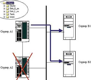 Допустим, пользователь собирается ежедневно в час ночи запускать программу антивирусного сканирования. При этом программа-сканер действует независимо от кластера. Все, что ей необходимо, - наличие диска для проверки. В то же время диск может быть перемещен после сбоя на другой узел кластера. Т. е., если не принять никаких дополнительных мер, программа-сканер просто-напросто аварийно завершится, не найдя диска на своем «родном» месте.