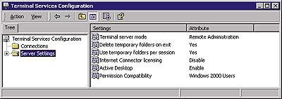 Окно настройки терминальных служб, Terminal Services Configuration, содержит и каталог настроек сервера, Server Settings (см. Рисунок 2). На правой панели перечислены установки, относящиеся ко всем сессиям терминального сервера, а не только к сессиям протокола RDP. В нашем случае эти установки полезны лишь отчасти. Например, для смены режима работы терминальных служб с Remote Administration на Application Server (и обратно) потребуется полная переустановка терминальных служб. Если администратор попытается поменять эти установки с помощью интерфейса Server Settings, откроется окно Windows Setup с предложением заново пройти все стадии установки терминального сервера. О соблюдении политики лицензирования в случае использования Internet Connector беспокоиться нечего: присоединяться к терминальному серверу могут одни лишь пользователи Internet, осуществляющие анонимный доступ. В большинстве случаев установки, принятые по умолчанию (т. е. некоторая комбинация установок, выбранная администратором системы при инсталляции терминальных служб, плюс некоторые общие установки) работают прекрасно. Исключение составляет лишь Active Desktop, которую я лично всегда отключаю.