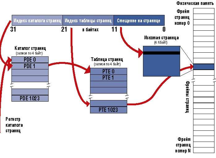 | Экран 2. Трансляция адресов виртуальной памяти для x86 в стандартном случае. |