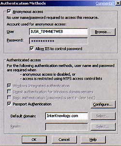 Одна из интереснейших функций .NET Web Server — встроенный в IIS 6.0 механизм аутентификации Passport (см. Экран 4). Учетную запись Windows в Active Directory (AD) можно поставить в соответствие учетной записи Passport. Это позволит повысить надежность аутентификации как внутри, так и вне брандмауэра — чрезвычайно полезная функция. После аутентификации система устанавливает соответствие между пользователем Passport и пользователем AD (если оно существует) с помощью его идентификатора Passport. Программисты и администраторы IIS могут задействовать эту модель безопасности для авторизации на базе пользователей и списков управления доступом AD на серверах, работающих с IIS 6.0.