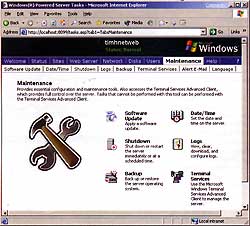 В состав продукта входит значительно усовершенствованный административный инструментарий, возможности которого не ограничены только управлением IIS. Большинство административных задач, в настоящее время выполняемых в MMC, можно осуществить в интерфейсе Web User Interface for Microsoft Windows Server Administration (см. Экран 5). Возможно, обеспечить безопасность этого инструмента на базе Web слишком трудно. По умолчанию инструмент заблокирован, но многие администраторы, вероятно, удалят или отключат его, чтобы полностью исключить возможность злоупотреблений.