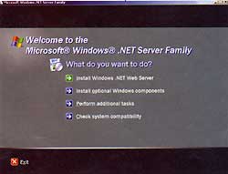 На установочном компакт-диске .NET Web Server имеется полезная программа проверки совместимости. Перед запуском программы рекомендуется прочитать предварительные замечания, подготовленные Microsoft. Функция Check system compatibility — доступ к которой можно получить из главного экрана Welcome (см. Экран 1) — обнаружит потенциальные проблемы прежде, чем пользователь приступит к установке. Очень удобно получать уведомления о неприятностях, с которыми придется столкнуться во время процесса установки.