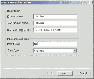 Структурные классы — это единственные классы, объекты которых могут существовать в каталоге и являются производными от абстрактных либо от других структурных классов. Структурный класс может содержать в своем определении любое количество дополнительных классов. Абстрактные классы — это шаблоны, используемые только для создания новых структурных классов. Объекты абстрактных классов в каталоге создать нельзя. Новый абстрактный класс создается путем наследования от уже существующего абстрактного класса. Дополнительные классы содержат наборы атрибутов и используются для создания структурных или абстрактных классов. Экземпляры дополнительного класса в каталоге создать нельзя — на основе дополнительных классов разрешается создавать только новые дополнительные классы.