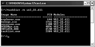 | Экран 1. Использование tasklist.exe для нахождения процессов, загружающих DLL. |
