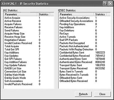 Администраторы, использующие в своих сетях IP Security (IPSec), удивятся, не обнаружив в составе XP такой полезной утилиты мониторинга связей IPSec, как Ipsecmon (ipsecmon.exe). Но огорчаться не стоит — на смену Ipsecmon пришла оснастка IP Security Monitor консоли управления Microsoft Management Console (MMC), наделенная расширенными функциями мониторинга как локальных, так и удаленных систем XP. Чтобы обратиться к ней, необходимо запустить mmc.exe и выбрать из меню File пункт Add/Remove Snap-in. По щелчку на кнопке Add открывается диалоговое окно Add Standalone Snap-in. Из списка оснасток следует выбрать IP Security Monitor и щелкнуть на кнопке Add. Чтобы вернуться в консоль MMC, следует щелкнуть на кнопке OK диалогового окна Add Standalone Snap-in. Развернув раздел Local Machine, можно увидеть два узла: Main Mode и Quick Mode. Эти узлы соответствуют первому (Phase I) и второму (Phase II) этапам процесса согласования IPSec. Последовательно развернув узел Quick Mode, а затем узел Security Associations, можно увидеть список ассоциаций безопасности (security associations, SA), существующих на этапе Phase II (см. Экран 4). Чтобы получить дополнительную информацию, достаточно дважды щелкнуть на SA. В других узлах можно найти подробную информацию о фильтрах и политиках, управляющих SA. Щелкнув правой кнопкой мыши на узле Machine и выбрав пункт Statistics, можно увидеть сводку информации о состоянии IPSec на данной системе (см. Экран 5).