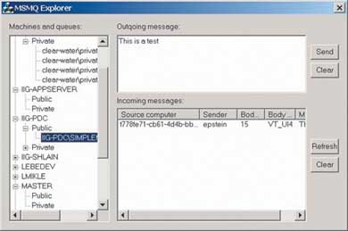 Программа, которую я использую в качестве демонстрационной, позволяет получить список рабочих станций и серверов в домене, для каждого компьютера - список публичных и частных очередей и содержащиеся в них сообщения. Кроме того, она позволяет отправить текстовое сообщение в указанную очередь.