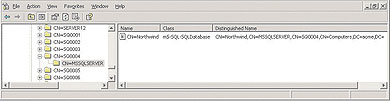 После регистрации экземпляра SQL Server в AD при помощи процедуры sp_ActiveDirectory_Obj можно добавить базы данных. Например, для добавления базы данных Northwind в AD нужно набрать: