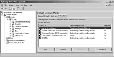 Консоль Group Policy Management Console (GPMC) — инструмент управления AD из Windows Server 2003 — удобна для делегирования административных полномочий над объектами Group Policy Objects (GPO). В интерфейсе GPMC предусмотрена специальная вкладка Delegation (экран 4) для каждого GPO. GPMC можно загрузить бесплатно с Web-узла Microsoft.