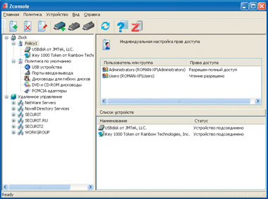 Для каждого типа устройств Zlock предполагает возможность гибкой настройки прав доступа на основе списков контроля доступа (ACL). Для каждого физического или логического устройства и для каждого пользователя или группы пользователей из Active Directory можно разрешить полный доступ или чтение либо запретить доступ.